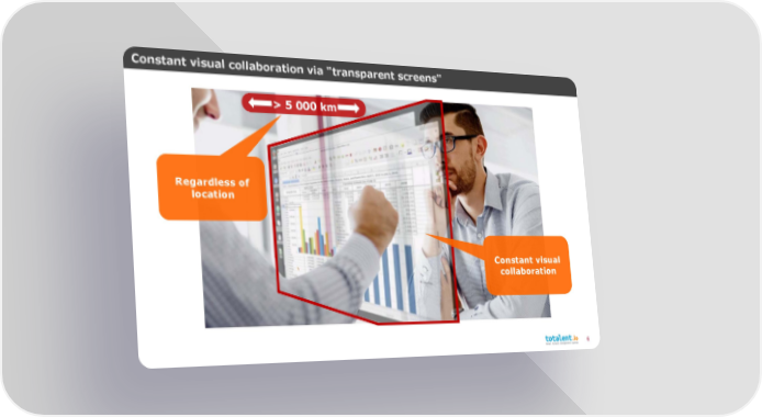 Constant visual collaboration via "transparent screens" > 5 000 km Regardless of location Constant visual collaboration 6